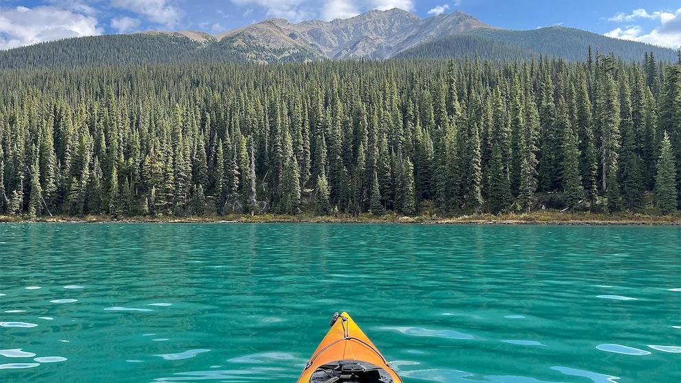 - The colour of Maligne Lake’s water changes the closer you paddle to its glaciers (Credit: Eliot Stein)