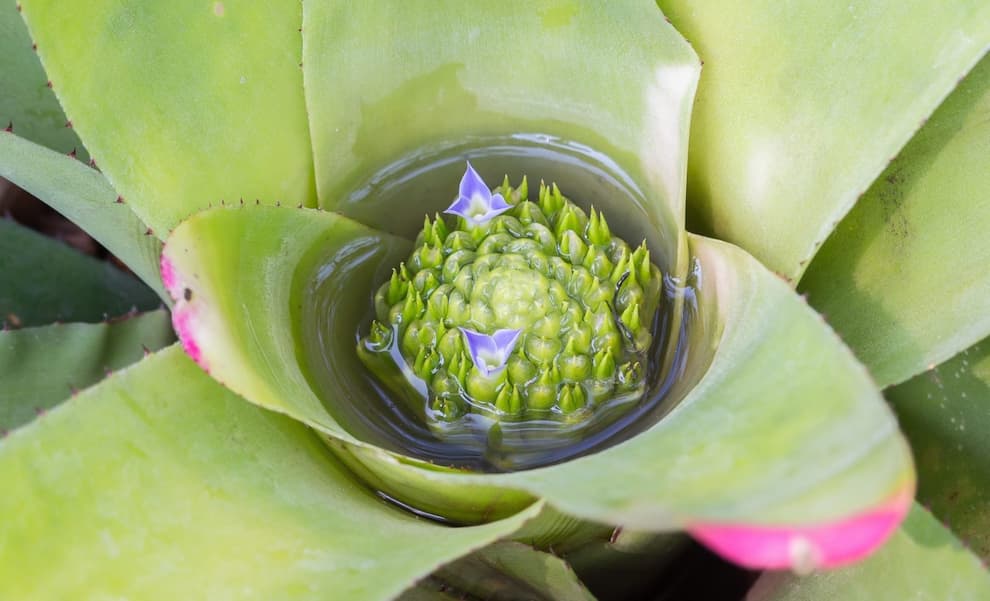 بروملیادهای مخزنی اپیفیت، گیاهانی هستند که روی شاخههای درختان رشد میکنند، نه در خاک. برگهای آنها ساختاری مخزنمانند ایجاد میکند که آب باران را در خود جمع میکند.