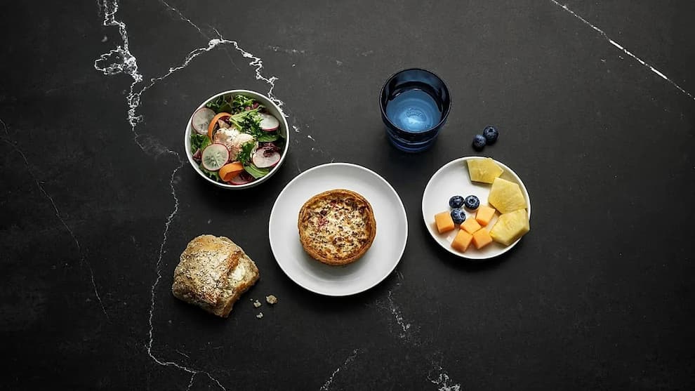 منو بسته به مسیر، زمان پرواز تغییر میکند. برای مثال در مسیر هلسینکی به دوحه، مسافران بیزینس کلاس میتوانند سفر خود را با گزینههایی مانند موارد زیر آغاز کنند: