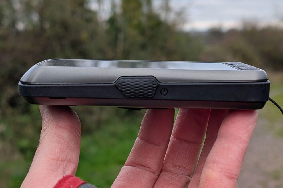 حلقه کوچکی برای اتصال بند ایمنی طراحی شده است. به نظر نمیرسید امکان نصب آن روی پایه جلویی وجود داشته باشد، بنابراین اتصال بند و همراه داشتن دستگاه هنگام ترک دوچرخه در مکان عمومی گزینه مناسبی بود. کیس لاستیکی نیز دستگاه را در برابر ضربه و افتادن ناگهانی محافظت میکند. در آزمایشی که دوچرخه روی یک مسیر شنی واژگون شد، دستگاه کاملاً سالم باقی ماند.