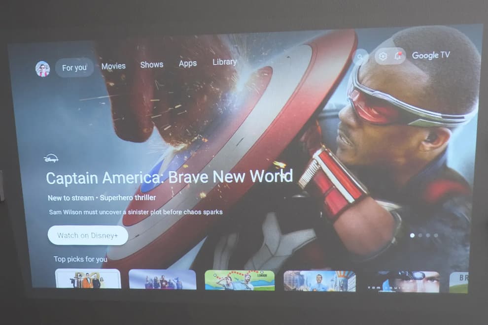 با روشن کردن دستگاه، تنظیم خودکار زاویه تصویر انجام میشود و سپس وارد رابط Google TV میشوید. اتصال به وایفای نسخه ۵ انجام میشود که برای پخش 1080p کافی است. Google TV نسبت به Android TV قدیمی Xgimi بسیار روانتر عمل میکند و از اکثر پلتفرمهای استریم پشتیبانی میکند.
